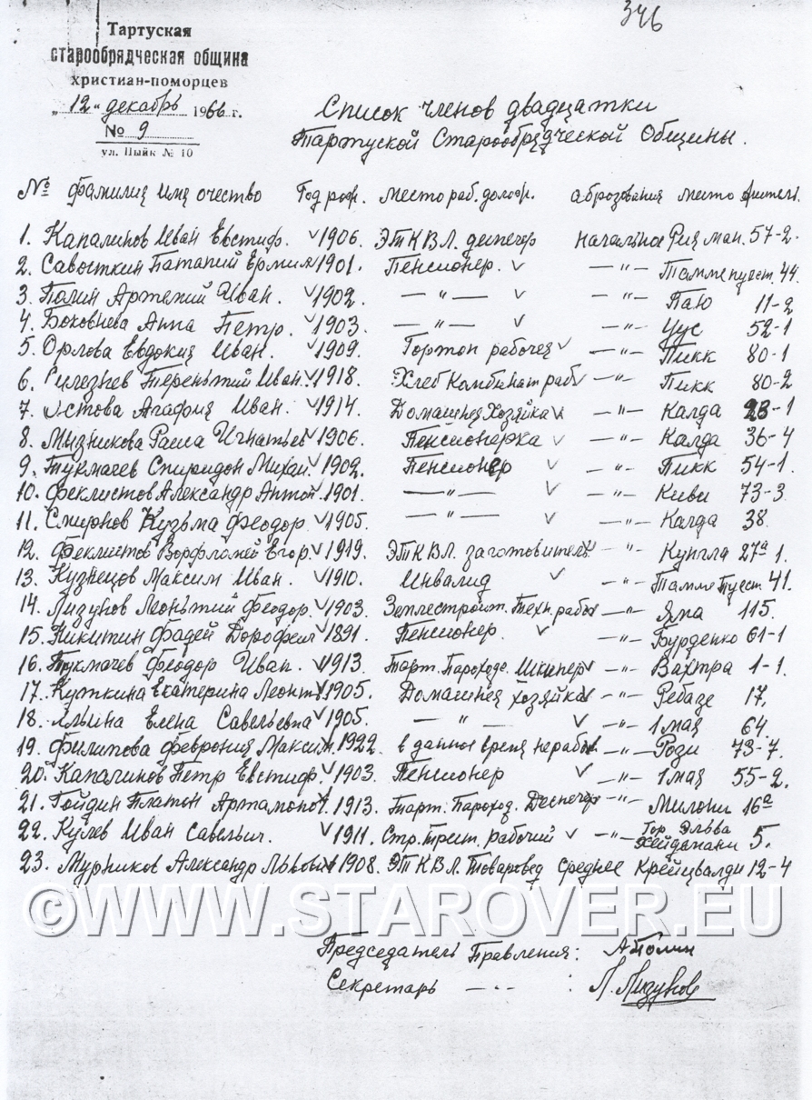 Ässitajate nimekiri Tartu koguduses, 1966 a.